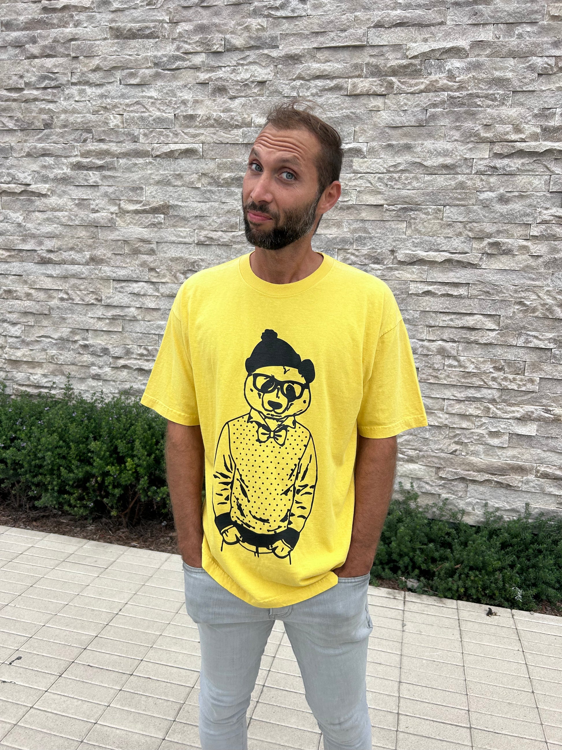 Shirts made this way at the factory can’t be sold to clients as perfect and that’s were we come in and upcycle the shirt with a cool design!